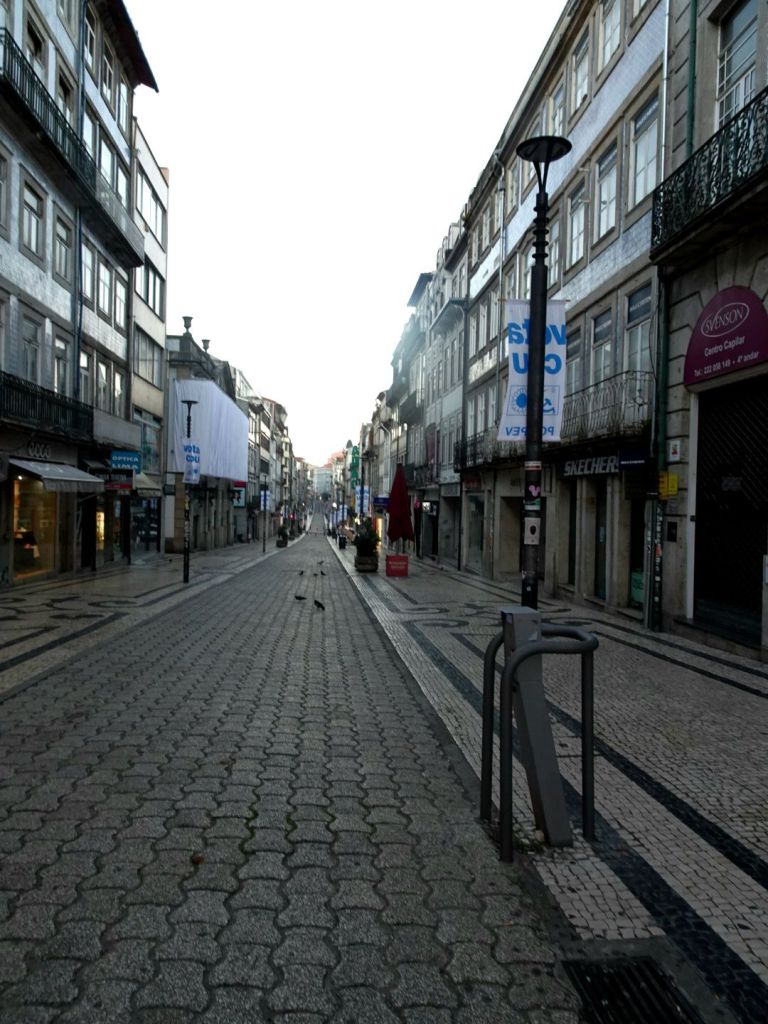La rue Sainte Catherine sans touriste paraît bien triste. Les seules personnes que j’ai rencontrées en allant rejoindre la berge du Douro furent des fêtards bien bien éméchés.