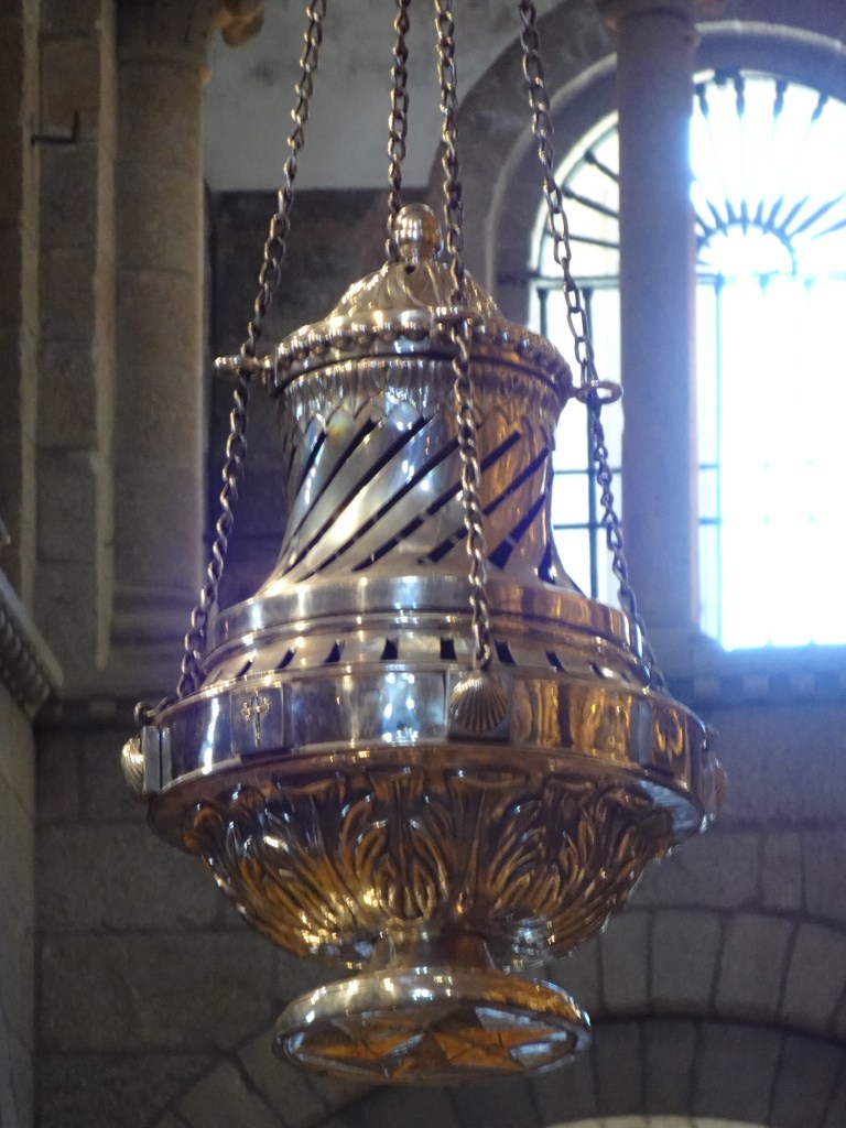 J’ai accompagné Benoît à la gare des bus pour Porto . Vers midi, je psuis passé devant la cathédrale . La messe n’avait pas encore commencé, alors j’ai décidé de rester pour admirer le botafumiero.