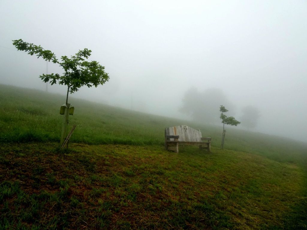 Le sentier, d’abord accueillant, s’enfonçait dans les sous-bois, jusqu’à ce que mes ischios expriment leur mécontentement. L’évidence s’imposait : la pente devenait implacable. Longue, d’un seul tenant, sans répit, elle ne nous épargnait pas. On haletait, on transpirait, certains s’arrêtaient pour reprendre leur souffle, d’autres s’aidaient de leurs bâtons. Chacun donnait le meilleur de lui-même pour venir à bout de cette satanée montée. J’ai mis le turbo, version marche nordique ! Je poussais fort sur les bâtons pour me propulser vers l’avant. Un Allemand a essayé de me griller la politesse ? Il ne me connaissait pas assez ! Il fallait en finir, et vite. Bref, on est tous arrivés, heureux et soulagés d’avoir survécu à cet exploit mais pas très frais !