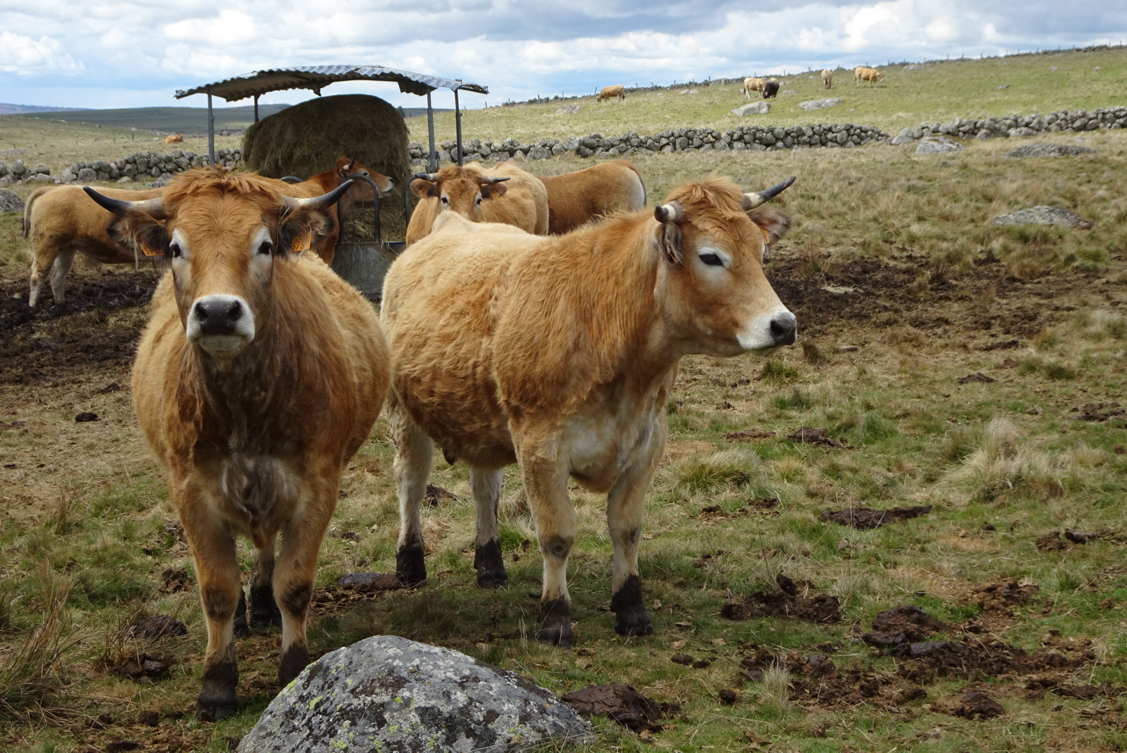 Direction le plateau de l’Aubrac. Vaste étendue à plus de 1000 m d’altitude, déforestée par l’homme afin de créer des estives pour les célébrissimes vaches de l’Aubrac.