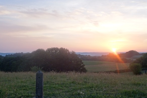L’étape du jour sera longue et chaude. Il faut donc partir de bonne heure. 7h30 !!!. La rosée mouille les pieds, il ne fait pas chaud mais c’est un véritable bonheur de voir la nature s’éveiller. Au bout d’une heure de route, au bout d’une grande côte, un grand moment d’émotion…