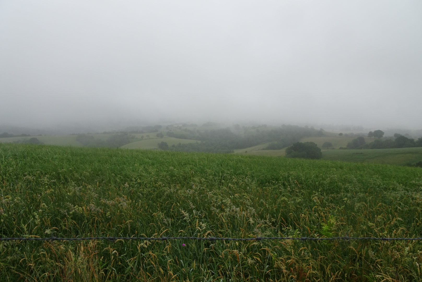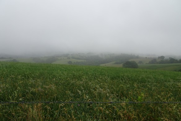 Nous laissons Saint Chély d’Aubrac dans la grisaille du petit matin. Une grasse matinée serait la bienvenue, mais il vaut mieux oublier l’idée. (Du moins pour quelques mois)