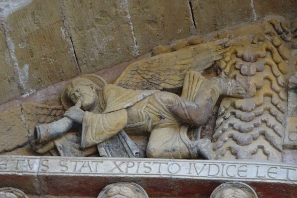 Le tympan de cette abbatiale est un chef d’œuvre qui place la sculpture romane  à son plus haut niveau.  Le paradis d’un côté l’enfer de l’autre et jésus au milieu.