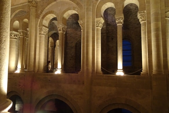 Pour terminer la soirée, c’est la bénédiction des pèlerins dans l’abbatiale, (encore une) puis viennent les explications du tympan et nous terminons par un concert d’orgues avec visite de la partie supérieure de l’église. Le tout avec une mise en lumière. Ce moment était vraiment magiqueet c’est là que l’on se rend compte de toute la dimension de l’édifice.
