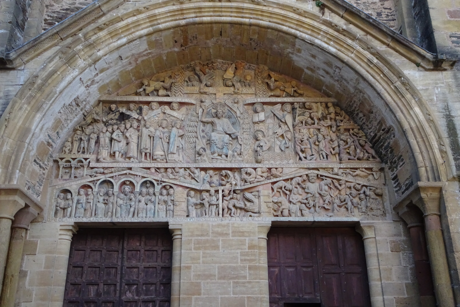 Le tympan de cette abbatiale est un chef d’œuvre qui place la sculpture romane  à son plus haut niveau.  Le paradis d’un côté l’enfer de l’autre et jésus au milieu.