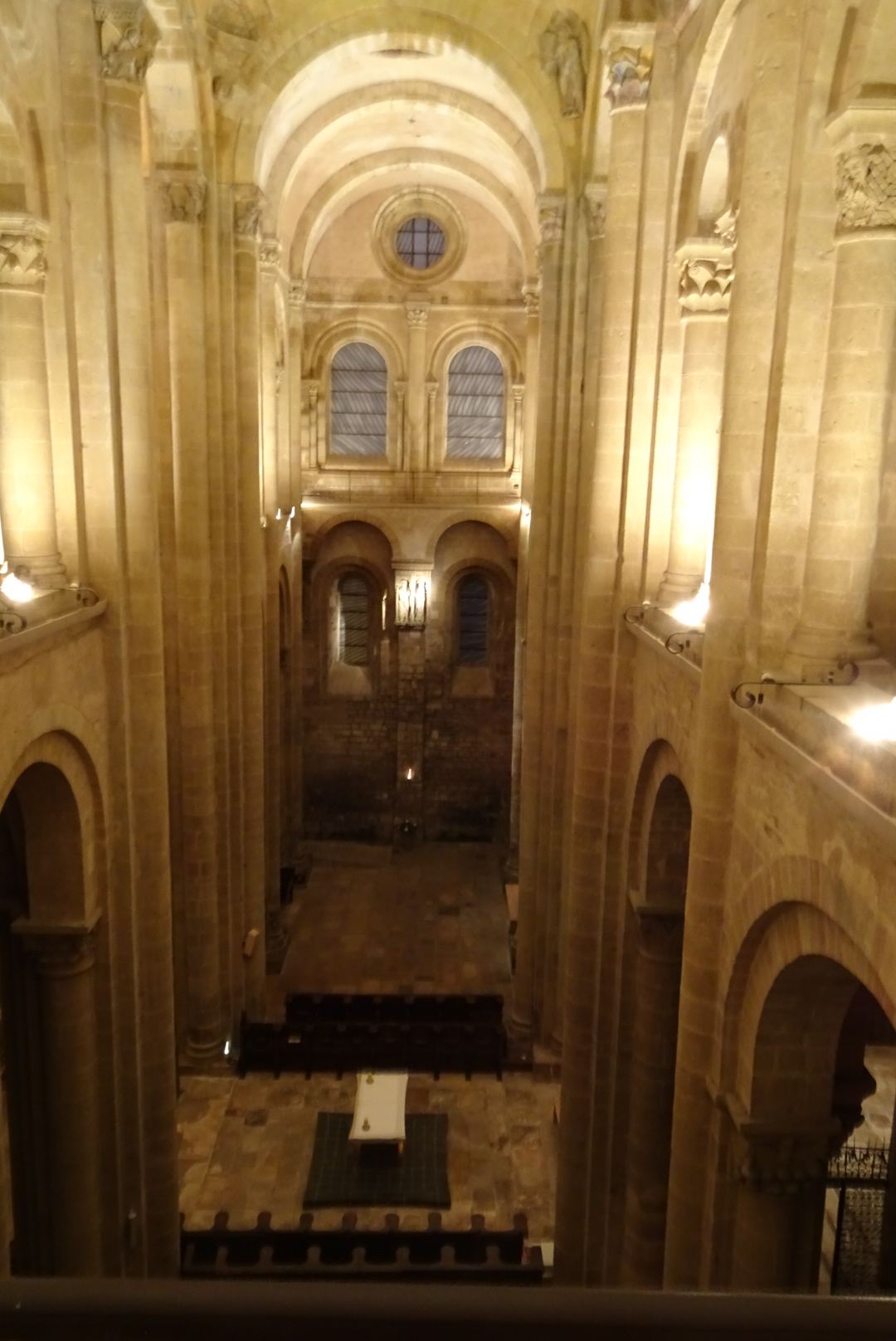 Pour terminer la soirée, c’est la bénédiction des pèlerins dans l’abbatiale, (encore une) puis viennent les explications du tympan et nous terminons par un concert d’orgues avec visite de la partie supérieure de l’église. Le tout avec une mise en lumière. Ce moment était vraiment magiqueet c’est là que l’on se rend compte de toute la dimension de l’édifice.