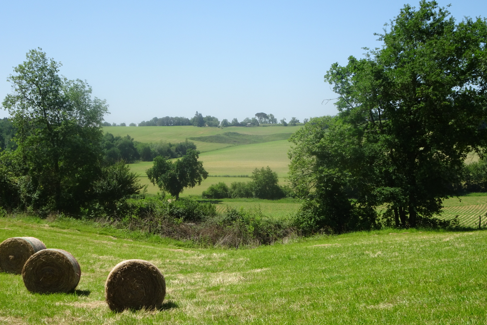 Sur le chemin rien de remarquable si ce n’est des vignes (pour l’armagnac) et des plantations de tournesols. Puis c’est la pause déjeuner où  le décor est comme dans tout le Gers très agréable.