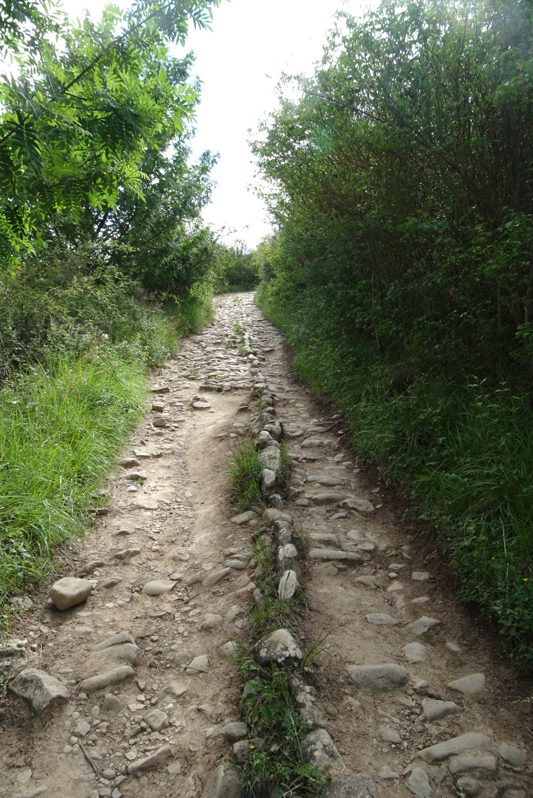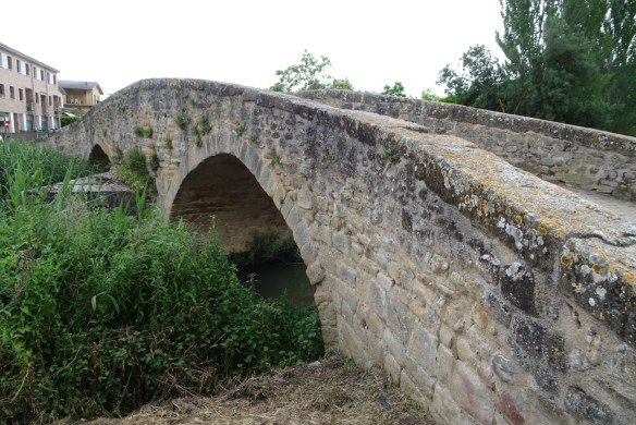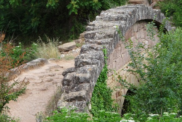 Nous empruntons la voie romaine de Navarre. C’est émouvant de savoir que depuis plus de dix siècles des centaines de milliers de pèlerins ont marché sur ces pierres. (émouvant peut être mais pas commode et en plus ça démolit les pieds). Les pauvres pèlerins ne se les mouillaient pas grâce au pont construit par les romains mais ils se les cassaient. (d’où peut-être l’expression ?)