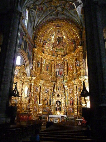 Allez retour sur l’étape du jour. A Navarette une église du XII avec un extraordinaire rétable baroque. Certains rajouteront bling bling. La photo n’est pas de moi. D’une part je n’aime pas photographier les intérieurs d’églises (exception faite pour Sylvie D) et d’autre part l’éclairage était en panne.