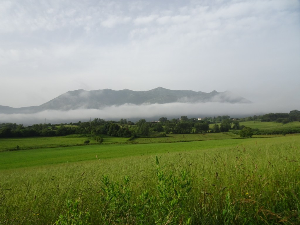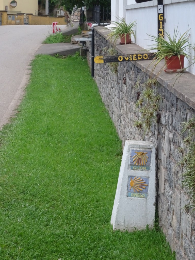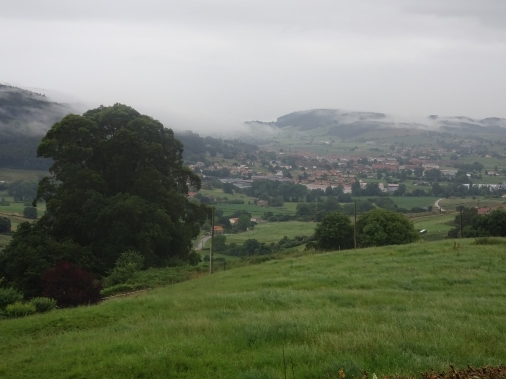 Départ à 6h du matin de Santillana del mar sur la pointe des pieds pour ne pas réveiller l’albergue. Le temps pas trop moche, le pas alerte, nous avançons dans la campagne.