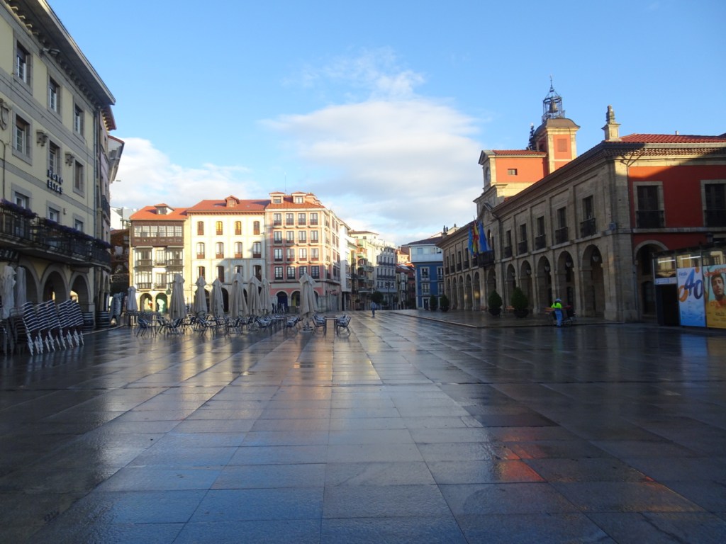 On quitte Avilés et sa place d’Epagne, pendant que tout le monde dort pour retrouver la campagne et le bord de la côte.