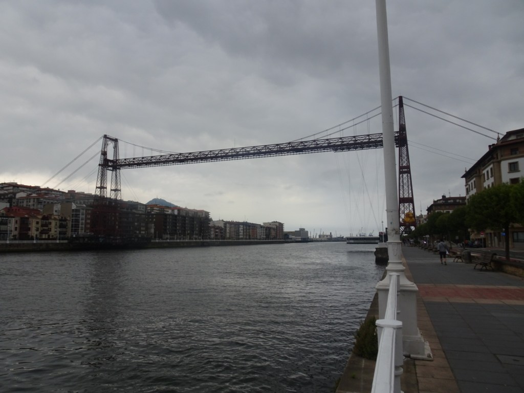 L’étape du jour n’est pas très attractive. Le chemin suit la rive du fleuve et longe le port de Bilbao, jusqu’au pont transbordeur. Celui-ci qui relie Getxo à Portugalete et a été déclaré patrimoine mondial par le Comité de l’UNESCO. Conçu il y a plus de 125 ans par l’architecte Alberto Palacio, disciple de Gustave Eiffel, il a été inauguré en 1893.