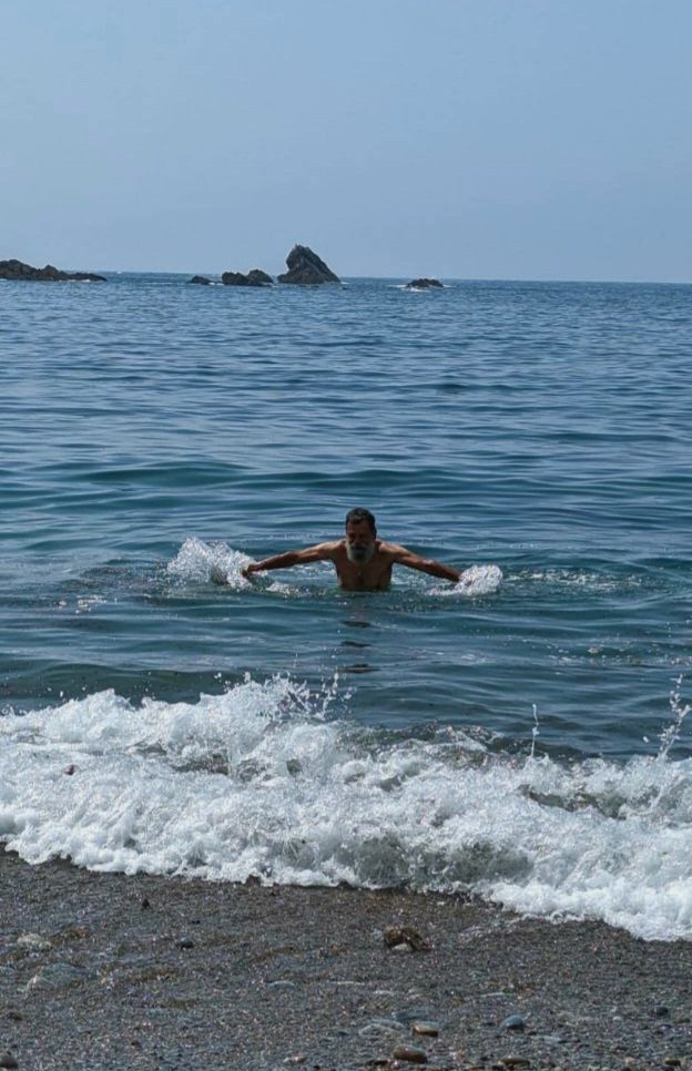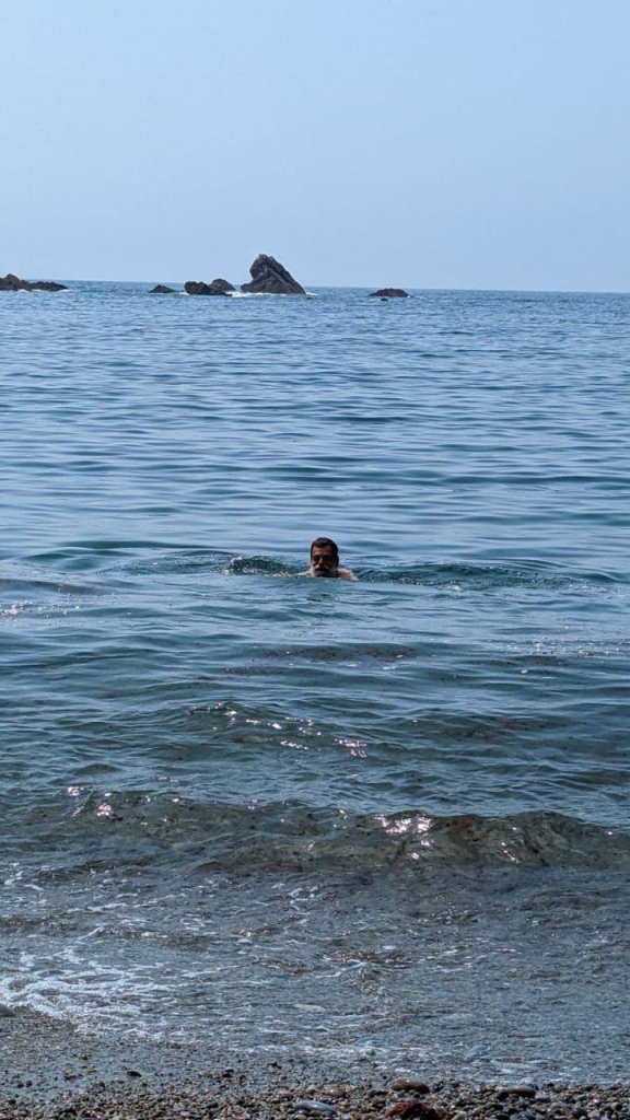 Je ne pouvais pas ne pas me baigner dans pareil décor. C’était impossible et ceux qui me connaissent bien savent que je ne peux pas me baigner dans l’eau froide. Et bien le chemin transforme le pèlerin frileux.
