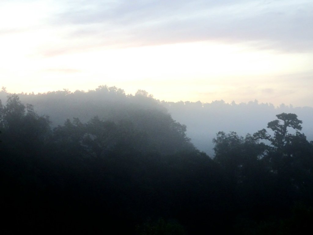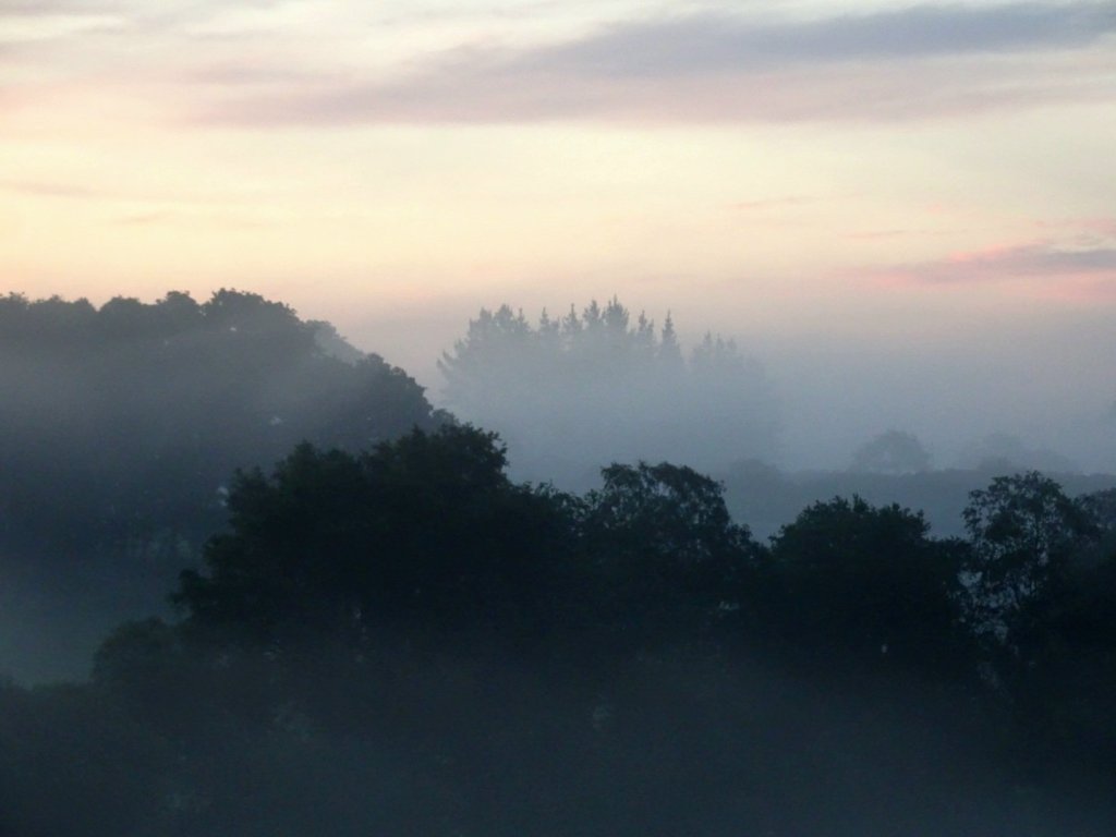 Lentement le brouillard s’est levé, laissant la place au soleil. Au loin les arbres appaissaient en estampes japonaises.